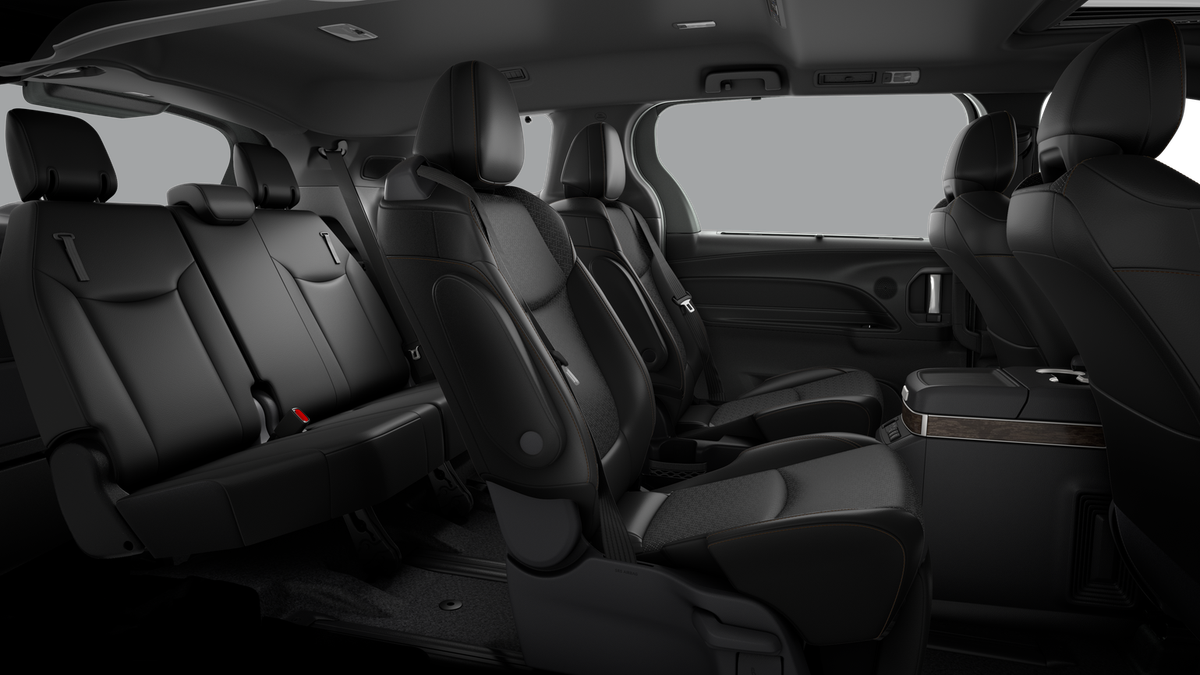 - 7-passenger seating with heated premium leather-trimmed second-row-seat captain's chairs with super-long-slide feature and ottomans [reclining_seat] [sienna_ottoman]sienna_ottomansienna_ottoman]