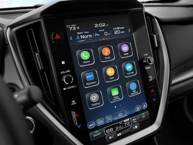 - Radio: Subaru 11.6" Multimedia Plus System -inc: valet mode, AM/FM stereo, HD Radio, multi-touch gesture high resolution display screen, voice activated controls, Bluetooth® audio streaming and hands-free phone connectivity, Bluetooth® hands-free SMS text messaging connectivity, iPod control capability, smartphone integration: wired and wireless Android Auto w/full screen view, wireless Apple CarPlay w/full screen view and wireless connection, USB and Over The Air (OTA) audio system update, audio system and Bluetooth® steering wheel control switches, 6 speakers (2 dash panel tweeter, 2 front door, 2 rear door), illuminated 3.5mm auxiliary input jack, illuminated USB A and C input charge ports, roof mounted satellite and connected services, roof mounted black antenna, connected services operation indicator, SOS emergency assistance (red button) and ehanced roadside assistance (blue i-button)