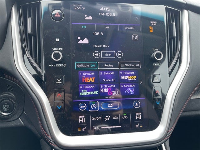 - Radio: Subaru STARLINK 11.6" Multimedia Plus Sys -inc: AM/FM stereo, HD Radio, voice activated controls, Bluetooth® audio streaming and hands-free phone connectivity w/SMS text messaging (applicable w/compatible cellphone), Near Field Communication (NFC), iPod control capability, SiriusXM All Access radio (subscription required), SiriusXM Travel Link (subscription required), smartphone integration: Android Auto, CarPlay and STARLINK cloud applications, 6 speakers, 3.5mm auxiliary input jack and front and rear dual USB ports