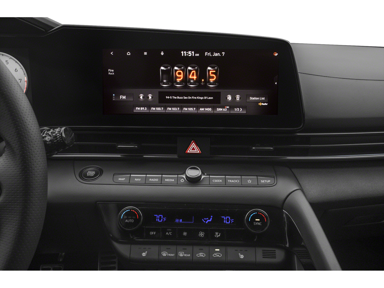• Radio: Bose AM/FM/HD/SiriusXM Audio System -inc: 8 speakers w/center channel and subwoofer, 10.25" high resolution touchscreen, navigation system, Android Auto and Apple CarPlay, SiriusXM Data Services including NavTraffic, NavWeather and sports and stocks (3-month trial), Bluetooth® hands-free phone system w/dynamic voice recognition, BlueLink Connected Car Services, Aux and USB Input and speed-sensitive automatic volume control